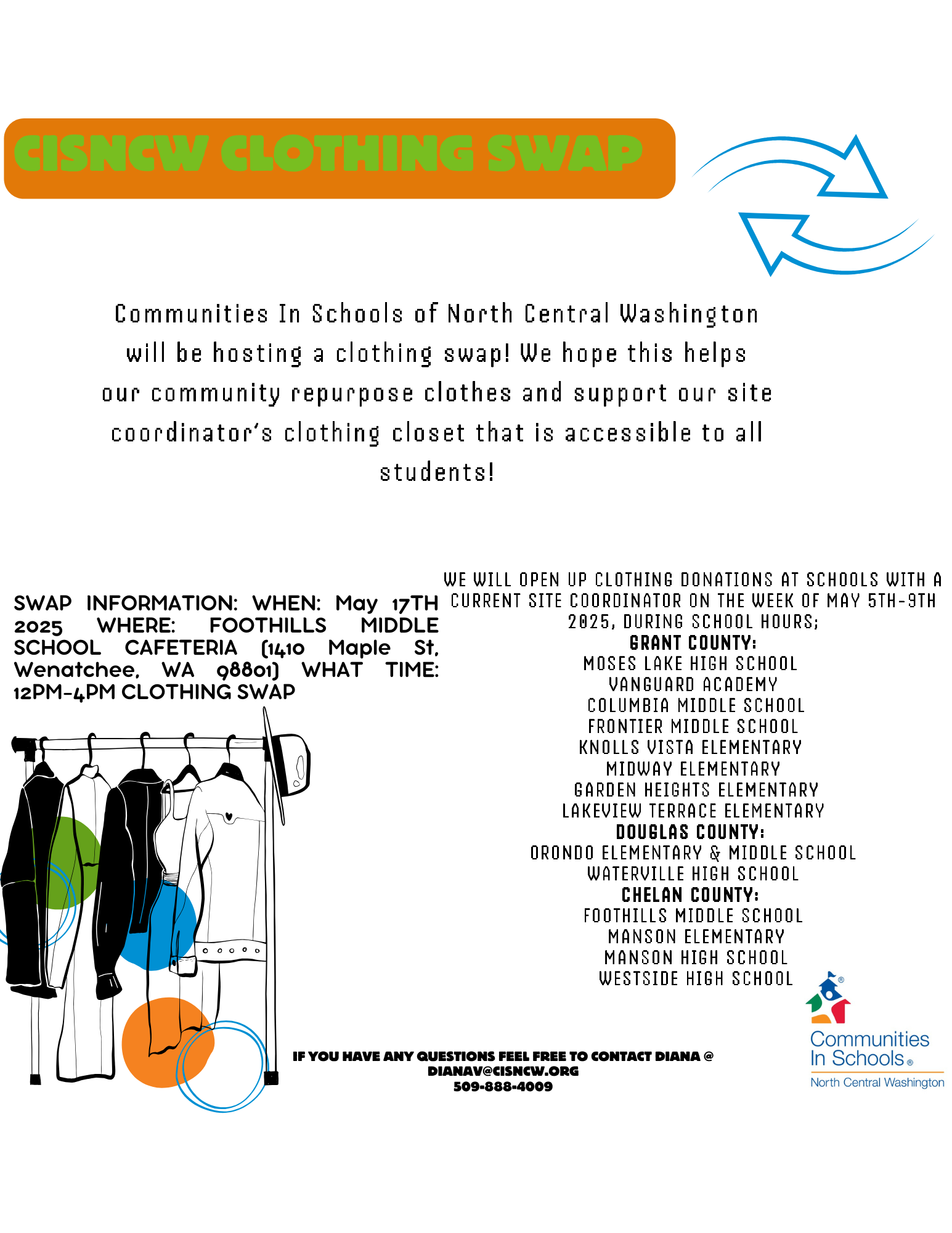 Please help us make our first CISNCW clothing swap a huge success! Reach out if you have any questions.